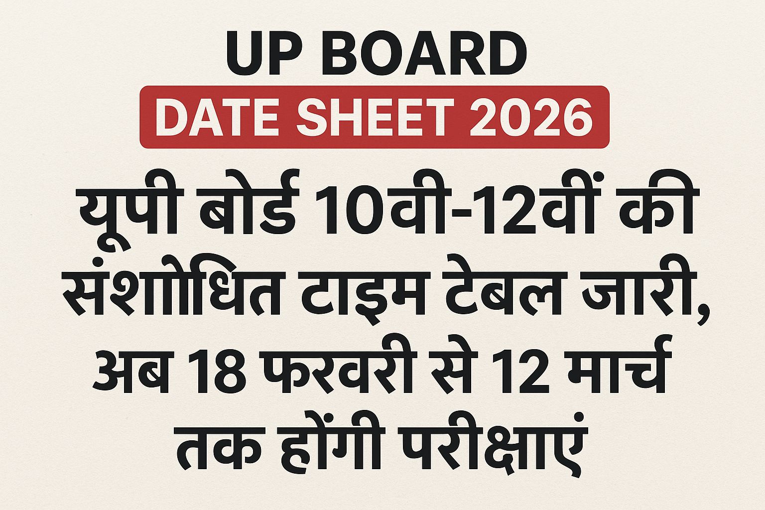 UP Board Date Sheet 2026: यूपी बोर्ड 10वीं-12वीं की संशोधित टाइम टेबल जारी, अब 18 फरवरी से 12 मार्च तक होंगी परीक्षाएं